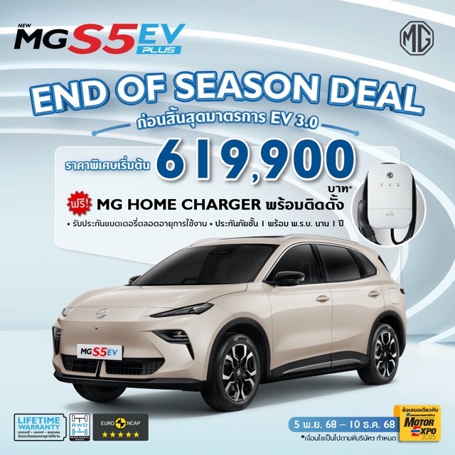 END OF SEASON DEAL ก่อนสิ้นสุดมาตรการ EV 3.0 กับ NEW MGS5 EV PLUS ราคาพิเศษเริ่มต้น 619,900 บาท