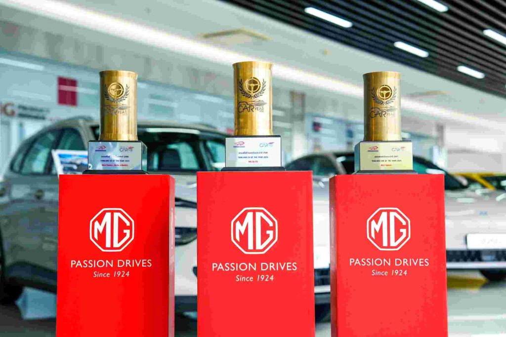 ยังได้รับ THAILAND CAR OF THE YEAR กับรุ่น ALL NEW MG3 HYBRID+ ซึ่งสะท้อนให้เห็นถึงศักยภาพในนำเสนอผลิตภัณฑ์ระดับพรีเมียมที่ได้รับการยอมรับในคุณภาพ โดยในปีนี้ เอ็มจี ยังได้รับรางวัลแคมเปญ