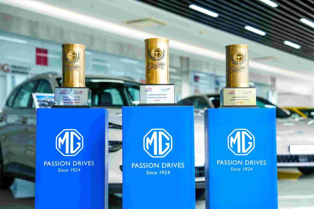 กรุงเทพฯ – 24 พฤศจิกายน 2568 – บริษัท เอสเอไอซี มอเตอร์ – ซีพี จำกัด และ บริษัท เอ็มจี เซลส์ (ประเทศไทย) จำกัด ผู้ผลิตและผู้จำหน่ายรถยนต์เอ็มจีในประเทศไทยสะท้อนความมุ่งมั่นในยกระดับอุตสาหกรรมยานยนต์ไทยให้ทัดเทียมอุตสาหกรรมยานยนต์โลก ด้วยการสร้างประวัติศาสตร์เป็นแบรนด์รถยนต์แบรนด์แรกในไทยที่ได้รับรางวัลรถยอดเยี่ยมแห่งปีบนเวทีระดับประเทศได้ต่อเนื่อง 3 ปีซ้อน โดยล่าสุด NEW MG S5 EV รถอีวีมหาชน ได้รับรางวัลอันทรงเกียรติ THAILAND EV OF THE YEAR 2025 จากสมาคมผู้สื่อข่าวรถยนต์และรถจักรยานยนต์ไทย (สรยท.) พร้อมสร้างความเชื่อมั่นด้วยการรับประกันแบตเตอรี่แรงเคลื่อนสูง ชุดมอเตอร์ขับเคลื่อน และชุดควบคุมมอเตอร์ขับเคลื่อน (EV LIFETIME WARRANTY) ตลอดอายุการใช้งาน จนสามารถคว้ารางวัลแคมเปญยอดเยี่ยมแห่งปี จากสมาคมฯ เพื่อส่งมอบความมั่นใจในการใช้รถยนต์ไฟฟ้าให้คนไทย