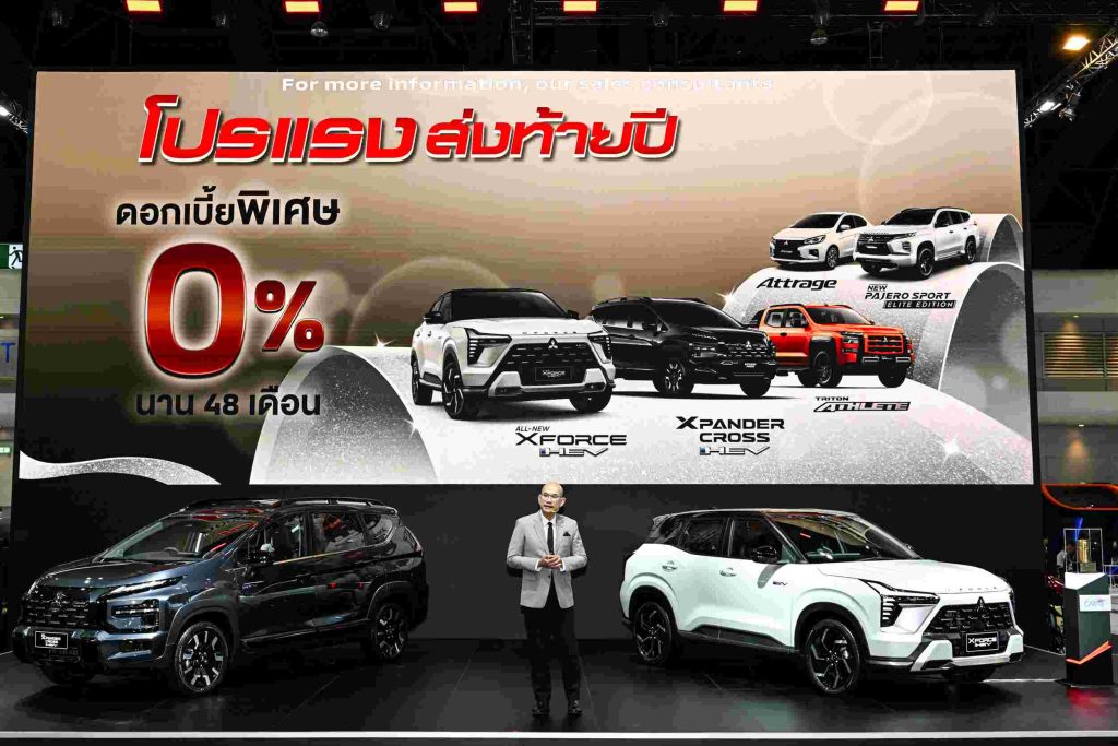 กรุงเทพฯ – 28 พฤศจิกายน 2568: บริษัท มิตซูบิชิ มอเตอร์ส (ประเทศไทย) จำกัด ชวนลูกค้าสัมผัสสุดยอดยนตรกรรมล้ำสมัยครบทุกไลน์อัพ พร้อมเดินหน้าเร่งเครื่องแรง ชูแคมเปญเด็ด ดอกเบี้ยพิเศษ 0% ส่งท้ายปี ภายใน งานมหกรรมยานยนต์ครั้งที่ 42 นำโดย ออล–นิว มิตซูบิชิ เอ็กซ์ฟอร์ส เอชอีวี รถยนต์คอมแพกต์เอสยูวีไฮบริดรุ่นล่าสุด พร้อมเผยโฉมรถใหม่ 3 โมเดล มิตซูบิชิ เอ็กซ์แพนเดอร์ และ เอ็กซ์แพนเดอร์ ครอส เอชอีวี ใหม่ รถครอบครัวอเนกประสงค์ 7 ที่นั่งมิตซูบิชิ ไทรทัน สตรีท ใหม่ กระบะเมกะ แค็บ ตัวเตี้ยโฉมใหม่ และ มิตซูบิชิ ปาเจโร สปอร์ต จีที รุ่นย่อยใหม่ที่ใส่ฟีเจอร์มาแบบจัดเต็ม