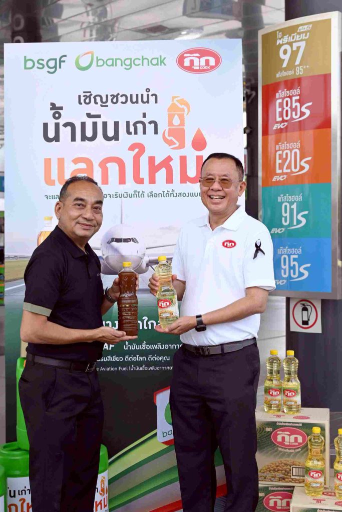 ความร่วมมือครั้งนี้เป็นส่วนหนึ่งของภารกิจด้านความยั่งยืนของกลุ่มบริษัทบางจาก “Fry to Fly” นำน้ำมันปรุงอาหารใช้แล้วเข้าสู่กระบวนการผลิตน้ำมันเชื้อเพลิงอากาศยานยั่งยืน (SAF) ที่โรงกลั่นน้ำมันบางจาก พระโขนง เพื่อลดการปล่อยก๊าซเรือนกระจก ลดปัญหาขยะน้ำมัน และสนับสนุนพฤติกรรมการไม่ใช้น้ำมันทอดซ้ำ เพื่อสุขภาพที่ดีของประชาชนและสภาพแวดล้อมที่ยั่งยืน