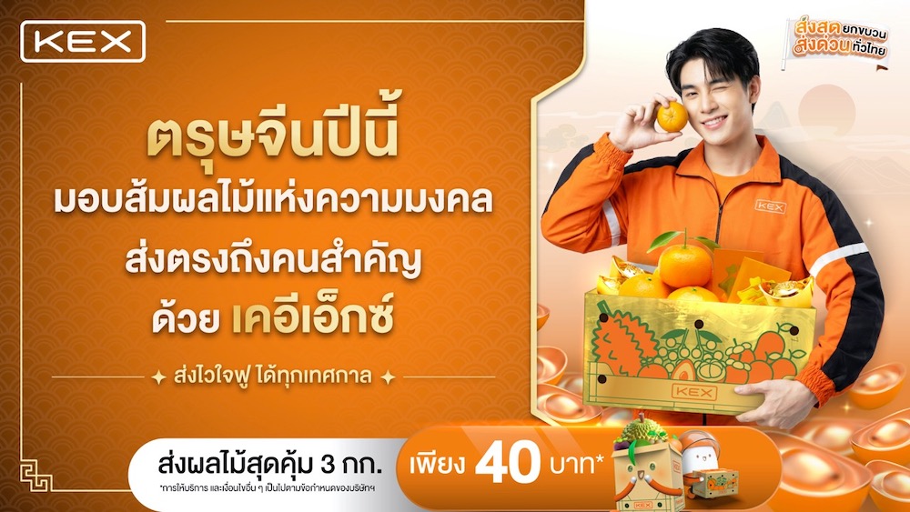 กรุงเทพฯ, 11 กุมภาพันธ์ 2569 – บริษัท เคอีเอ็กซ์ เอ็กซ์เพรส (ประเทศไทย) จำกัด (มหาชน) หรือ “KEX” ผู้นำด้านการจัดส่งพัสดุด่วนทั่วไทย เปิด “ฤดูกาลแห่งส้ม” อย่างเป็นทางการ ยกระดับมาตรฐานการขนส่งผลไม้มงคลรับตรุษจีน ชูจุดเด่น “เคอีเอ็กซ์ส่งตรงส่งไว เหมือนได้ไปเก็บจากสวน” พร้อมอัดโปรโมชั่นหนุนผู้ประกอบการและผู้บริโภคทั่วไทย ราคาเริ่มต้น 3 กิโลกรัม เพียง 40 บาท*