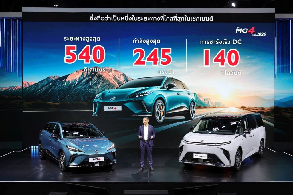 กรุงเทพฯ – 23 มีนาคม 2569 – บริษัท เอสเอไอซี มอเตอร์ – ซีพี จำกัด และ บริษัท เอ็มจี เซลส์ (ประเทศไทย) จำกัด ผู้ผลิตและผู้จำหน่ายรถยนต์เอ็มจีในประเทศไทย เปิดตัวรถยนต์ไฟฟ้า 2 รุ่นใหม่ ที่ตอบโจทย์ไลฟ์สไตล์ผู้ใช้รถไฟฟ้าได้มากยิ่งขึ้น กับ e-MPV ขนาด 7 ที่นั่ง NEW MG MAXUS 9 รุ่น V+ ที่เพิ่มความสะดวกสบายของห้องโดยสารในอีกระดับ และอีกรุ่นกับ NEW MG4 MY2026 ที่ผ่านการอัปเกรดในทุกมิติทั้งดีไซน์ภายนอก เพิ่มลุคสปอร์ตด้วยสีเขียวเฉดใหม่ ทั้งผู้ขับขี่ และผู้โดยสาร สัมผัสได้ถึงความสะดวกสบาย และสมรรถนะการขับขี่ที่ทรงพลังมากขึ้นถึง 245 แรงม้า แรงบิดสูงสุดถึง 350 นิวตัน-เมตร รวมถึงระยะการขับขี่ที่ไกลขึ้นถึง 540 กิโลเมตร ตามมาตรฐาน NEDC นอกจากนี้ยังมียนตรกรรมของ เอ็มจี หลากหลายขุมพลังขับเคลื่อนที่มาพร้อมข้อเสนอพิเศษมาให้ลูกค้าได้สัมผัส และทดลองขับในงาน MOTOR SHOW 2026 ตั้งแต่วันที่ 25 มีนาคม 2569 – 5 เมษายน 2569 ณ อิมแพ็ค เมืองทองธานี