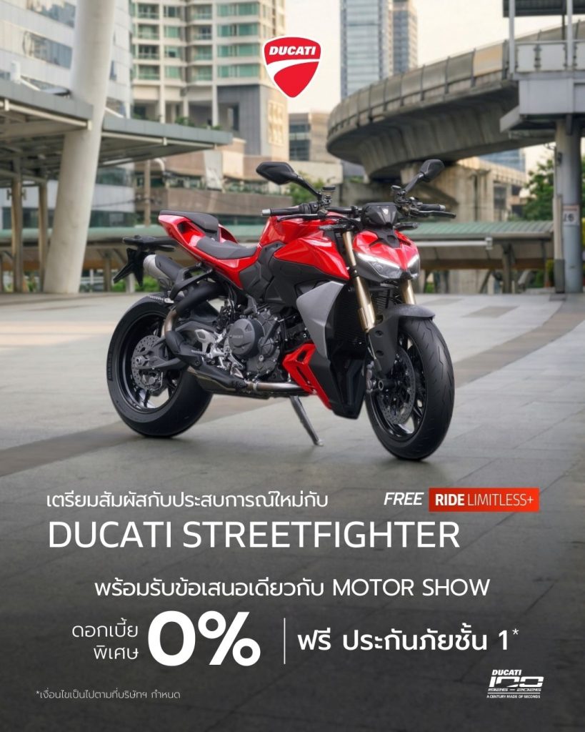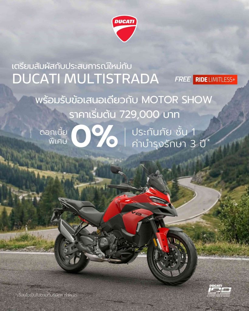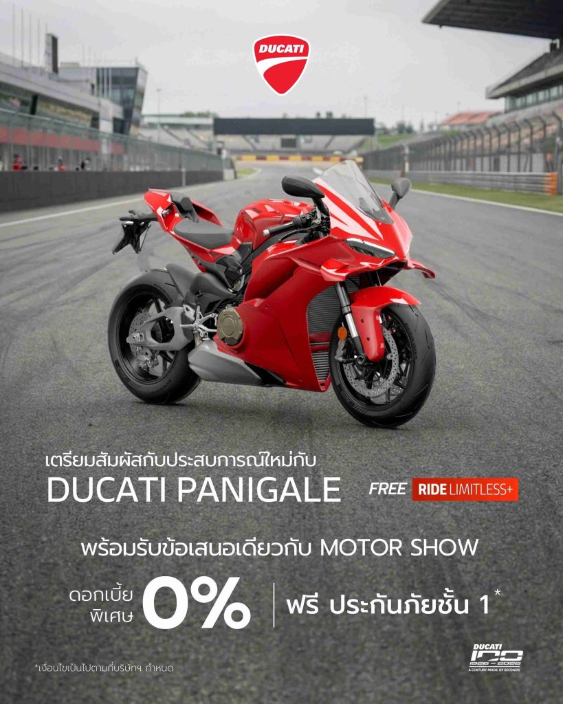 ผู้ที่สนใจสามารถสัมผัสรถ Ducati ครบทุก Model Range พร้อมทดลองนั่งและรับคำแนะนำจากผู้เชี่ยวชาญ รวมถึงจองรถและรับข้อเสนอพิเศษได้ที่บูธ ดูคาติ ประเทศไทย ภายในงาน Bangkok International Motor Show 2026 ณ อาคารชาเลนเจอร์ อิมแพ็ค เมืองทองธานี ระหว่างวันที่ 25 มีนาคม – 5 เมษายน 2569 หรือสอบถามข้อมูลเพิ่มเติมได้ที่โชว์รูม Ducati ทุกสาขาทั่วประเทศ รวมถึงช่องทางออนไลน์ เว็บไซต์: www.ducati.com/th Facebook: Ducati Thailand LINE Official: @ducatithailand