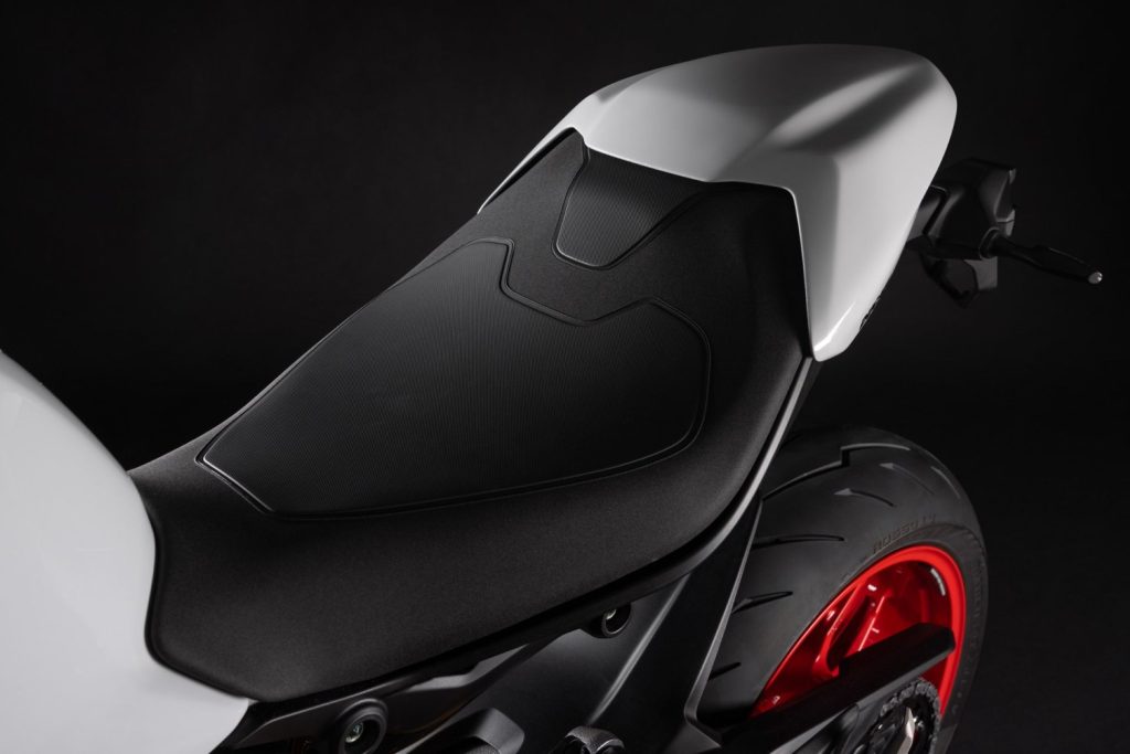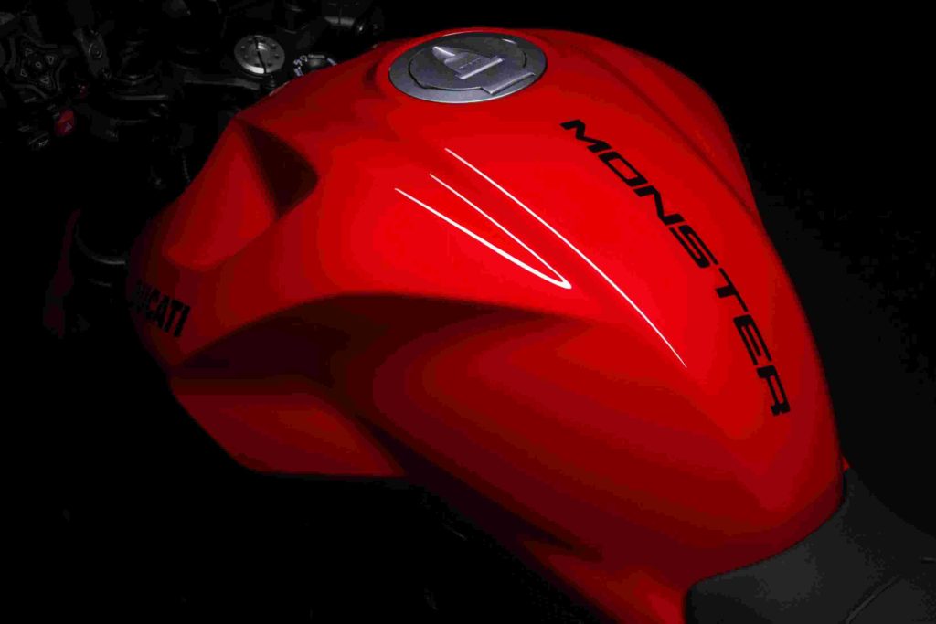 Monster รุ่นใหม่ได้รับการออกแบบขึ้นใหม่ โดยผสานเทคโนโลยีและดีไซน์ที่โดดเด่นเข้าด้วยกัน ตัวรถมีเส้นสายสปอร์ต แต่ยังคงความดุดัน พร้อมจุดสำคัญที่เป็นเอกลักษณ์ของ Monster ไม่ว่าจะเป็น ถังน้ำมันทรง Bison-back ที่เป็นเอกลักษณ์ของรถ Naked ของ Ducati ที่ถูกออกแบบใหม่ พร้อมดีไซน์ช่องรับอากาศด้านหน้า ที่ได้รับแรงบันดาลใจจาก Monster ใน Generation ที่ 2 มาพร้อมไฟหน้าที่ได้รับการดีไซน์ใหม่แบบ Full-LED Double “C” ตัวเบาะนั่งได้รับการออกแบบให้แคบลงและเตี้ยลง โดยมีความสูงรวม 775 มม. เพื่อช่วยให้ผู้ขับขี่รู้สึกมั่นใจได้มากขึ้น