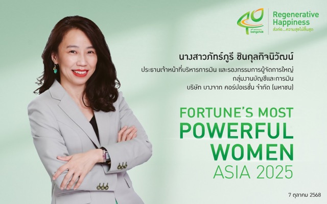 CFO บางจากฯ ติดอันดับ Fortune’s Most Powerful Women Asia 2025 ต่อเนื่องปีที่ 2 ตอกย้ำบทบาทผู้นำหญิงบริษัทพลังงานไทย บนเวทีโลก