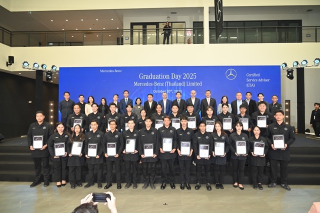 เมื่อวันที่ 10 ตุลาคม 2568 ที่ผ่านมา บริษัท เมอร์เซเดส-เบนซ์ (ประเทศไทย) จำกัด จัดงานวันสำเร็จการศึกษาและมอบประกาศนียบัตรให้แก่นักศึกษาช่างฝึกหัดจำนวน 25 คน ที่สำเร็จการศึกษาโครงการฝึกงานนักเรียนช่างฝึกหัดแบบทวิภาคี ในสาขาวิชาช่างเทคนิคยานยนต์เมคคาทรอนิกส์
