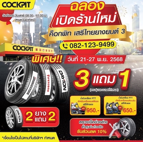 *สอบถามรายละเอียดเพิ่มเติมกับ ค็อกพิท เสรีไทยยางยนต์ 3