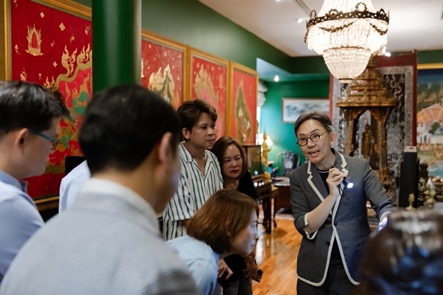 ทริป The Mobility of Art Experience ได้เชิญเจ้าของรถ GEELY EX5 จำนวน 35 ท่าน ร่วมเดินทางสู่ “แรงบันดาลใจจากงานศิลปะ” ผ่านหลากหลายกิจกรรม โดยไฮไลท์สำคัญคือ Exclusive Art Tour โดยนายเสริมคุณ คุณาวงศ์ ได้พาผู้เข้าร่วมสัมผัสเสน่ห์ศิลปะใน 3 โซนหลักของบ้านพิพิธภัณฑ์ เริ่มจาก The Residence บ้านพำนักที่ผสานศิลปะเข้ากับวิถีชีวิตประจำวัน ทั้งห้องอ่านหนังสือตกแต่งสไตล์ไทย ห้องน้ำชาที่จัดแสดงงานประณีตศิลป์หลายแขนง และ “ห้องจักรพันธุ์” ซึ่งรวบรวมผลงานของ อาจารย์จักรพันธุ์ โปษยกฤต และศิลปินไทยอีกมากมาย ต่อด้วย The Garden of Life สวนแห่งชีวิตที่รายล้อมด้วยงานประติมากรรมนับสิบชิ้น และปิดท้ายที่ The Cubic Building อาคารทรงเรขาคณิต 5 ชั้น อันเป็นพื้นที่จัดแสดงศิลปะร่วมสมัย ทั้ง 3 โซนยังถูกใช้เป็นพื้นที่จัดแสดง GEELY EX5 ในกิจกรรมครั้งนี้ สะท้อนการผสานระหว่างศิลปะและยนตรกรรมที่เรียบง่าย ทันสมัย และสง่างาม อันเป็นเอกลักษณ์ของแบรนด์ GEELY ได้อย่างลงตัว นอกจากการเยี่ยมชมงานศิลปะแล้ว ผู้เข้าร่วมยังได้ดื่มด่ำกับเมนูคอร์สอาหารไทยที่รังสรรค์ขึ้นพิเศษสำหรับทริปนี้ ณ ห้อง Grand Garuda ซึ่งตกแต่งด้วยงานศิลป์ที่ถอดพิมพ์จากผลงานของศาสตราจารย์ศิลป์ พีระศรี และไม้แกะสลักของอาจารย์ถวัลย์ ดัชนี เติมเต็มบรรยากาศการเดินทางครั้งนี้ด้วยเสน่ห์ของงานศิลปะในทุกย่างก้าว