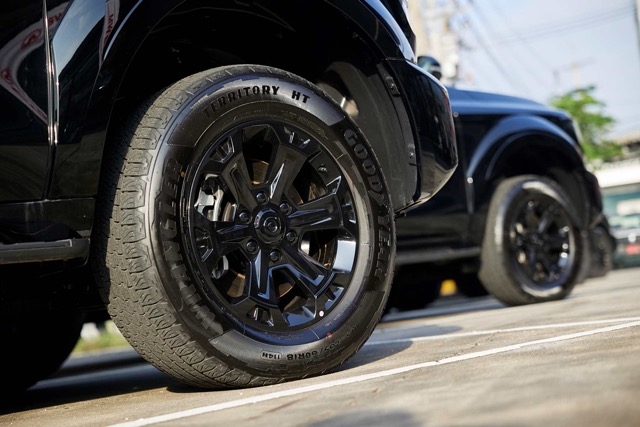 - ล้ออัลลอยขนาด 18 นิ้วสีดำ ขนาดยาง 265/60 R18 เพิ่มดีกรีความสปอร์ต เท่ให้กับดีไซน์ภายนอกของตัวรถได้เป็นอยางดี พร้อมยางอะไหล่ขนาดเท่าจริงใต้ท้องรถ
