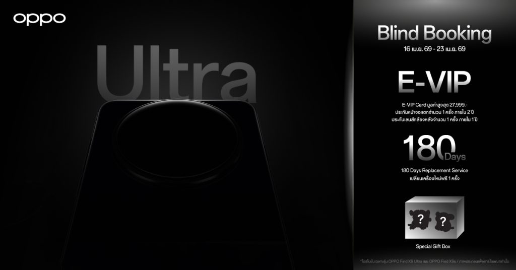 กรุงเทพฯ, 20 เมษายน 2569 – ออปโป้ ประเทศไทย ผู้นำตลาดสมาร์ตโฟน เตรียมเปิดตัวสมาร์ตโฟนรุ่นใหม่ล่าสุด ชวนสัมผัสประสบการณ์การถ่ายภาพระดับมืออาชีพนี้ได้ในงาน “Ultra Imaging Night OPPO Find X9 Ultra | OPPO Find X9s” โดยภายในงานยังยกทัพนวัตกรรมรุ่นใหม่ล่าสุด นำโดย OPPO Find X9 Ultra และ OPPO Find X9s พร้อมด้วย OPPO Enco Clip2, OPPO Enco Air5 Pro และ OPPO Watch X3 อุปกรณ์อัจฉริยะที่เติมเต็มประสบการณ์ทั้งด้านความบันเทิง และสุขภาพอย่างครบถ้วน
