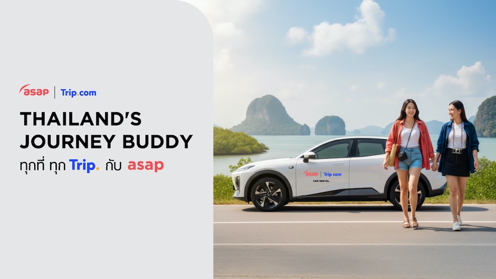 กรุงเทพฯ 13 พฤศจิกายน 2568 — Trip.com ผู้ให้บริการท่องเที่ยวชั้นนำ ประกาศความร่วมมือเชิงกลยุทธ์กับ asap Car Rental ผู้ให้บริการรถเช่าชั้นนำ เพื่อเปิดตัวแคมเปญ “Trip.com X asap – Everywhere Every Trip with asap” ความร่วมมือครั้งนี้จะทำให้ทั้งสองแบรนด์กลายเป็นคู่หูในการเดินทางที่ดีที่สุดสำหรับนักท่องเที่ยวที่ต้องการสัมผัสประสบการณ์การท่องเที่ยวในประเทศไทยด้วยการขับรถ