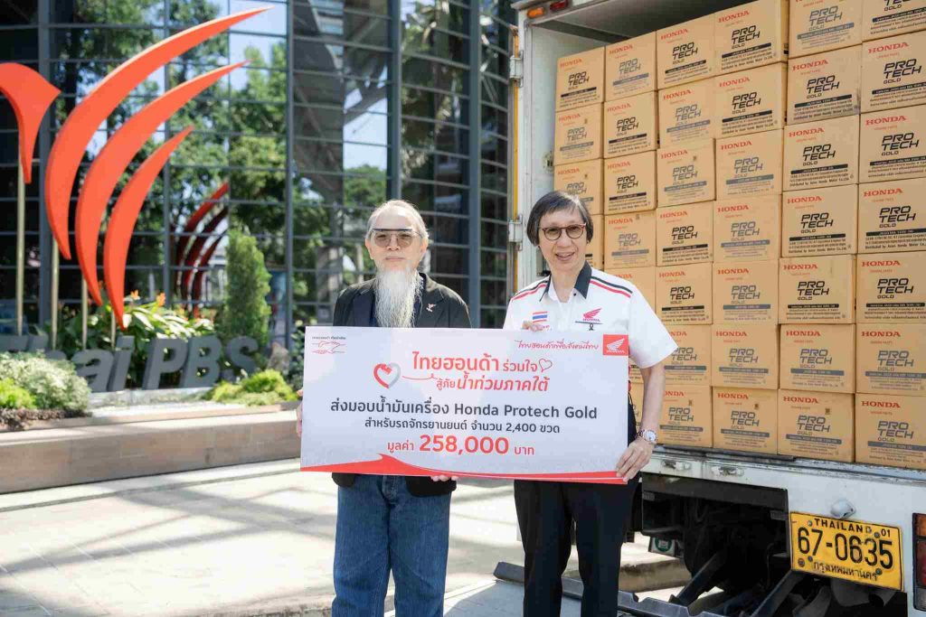 เมื่อวันที่ 4 ธันวาคม 2568 บริษัท ไทยฮอนด้า จำกัด ผู้ผลิตและจัดจำหน่ายรถจักรยานยนต์ และเครื่องยนต์อเนกประสงค์ฮอนด้าในประเทศไทย ร่วมกับ ไทยพีบีเอส ส่งมอบน้ำมันเครื่อง Honda Protech Gold สำหรับรถจักรยานยนต์ จำนวน 2,400 ขวด มูลค่ารวม 258,000 บาท เพื่อนำไปส่งมอบให้ศูนย์ซ่อมสร้างเพื่อชุมชน หรือ Fix it Center ที่สำนักงานคณะกรรมการอาชีวศึกษา วิทยาลัยเทคนิคหาดใหญ่ ที่จัดตั้งขึ้นเพื่อซ่อมรถจักรยานยนต์ และเครื่องใช้ไฟฟ้าที่ได้รับความเสียหายจากเหตุการณ์น้ำท่วมที่ภาคใต้ โดยไม่คิดค่าใช้จ่าย