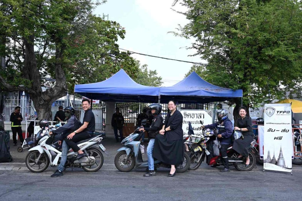 พระบรมศพ ในช่วงพระราชพิธีทรงบำเพ็ญพระราชกุศลสวดพระอภิธรรมพระบรมศพ สมเด็จพระนางเจ้าสิริกิติ์ พระบรมราชินีนาถ พระบรมราชชนนีพันปีหลวง ณ พระที่นั่งดุสิตมหาปราสาท เพื่อร่วมสนับสนุนการปฏิบัติหน้าที่และปันน้ำใจแก่จิตอาสาที่ทุ่มเทแรงกายแรงใจ อุทิศเวลาส่วนตัว พร้อมให้บริการประชาชนโดยไม่คิดค่าใช้จ่าย โดยมี นายผุดพงส์ พ่วงสุวรรณ ตัวแทนจักรยานยนต์จิตอาสา ร่วมใจทำดีเพื่อแม่ (บก.จร.) รับมอบ ณ ประตูเทวาภิรมย์
