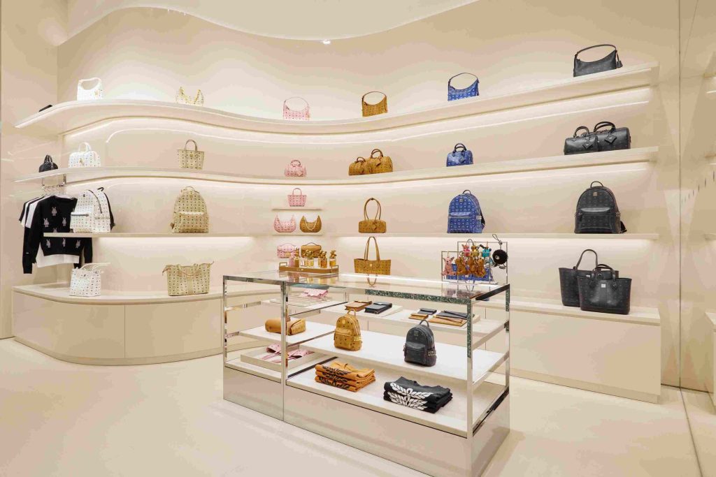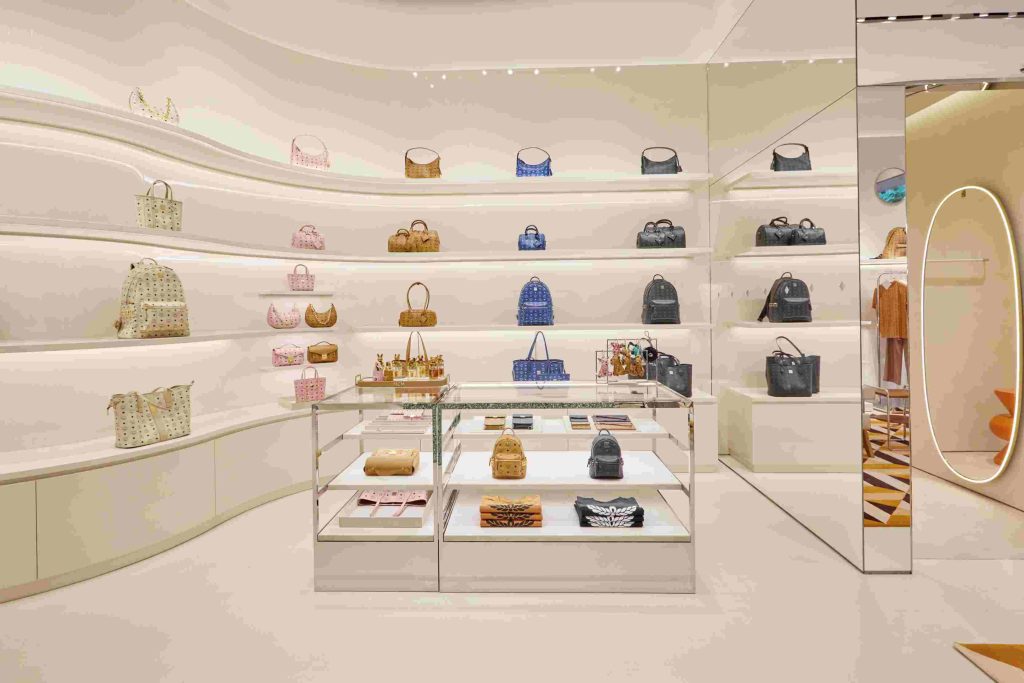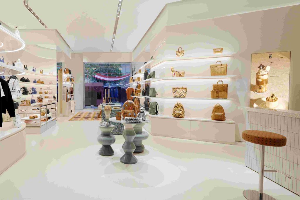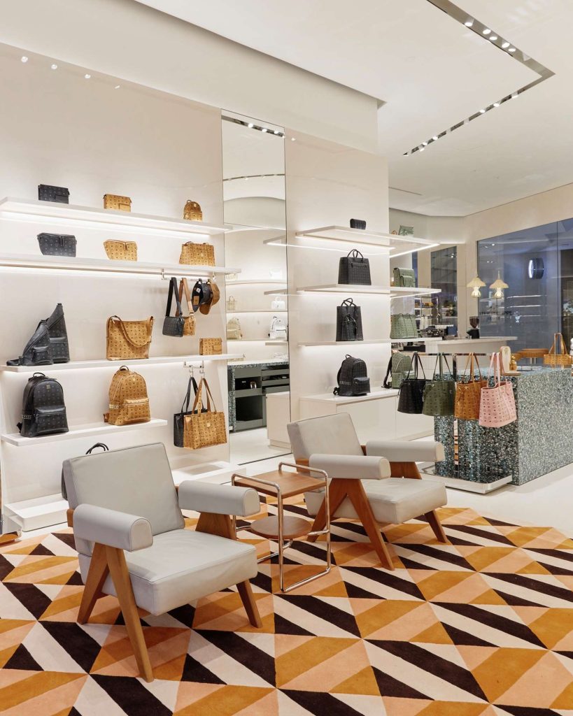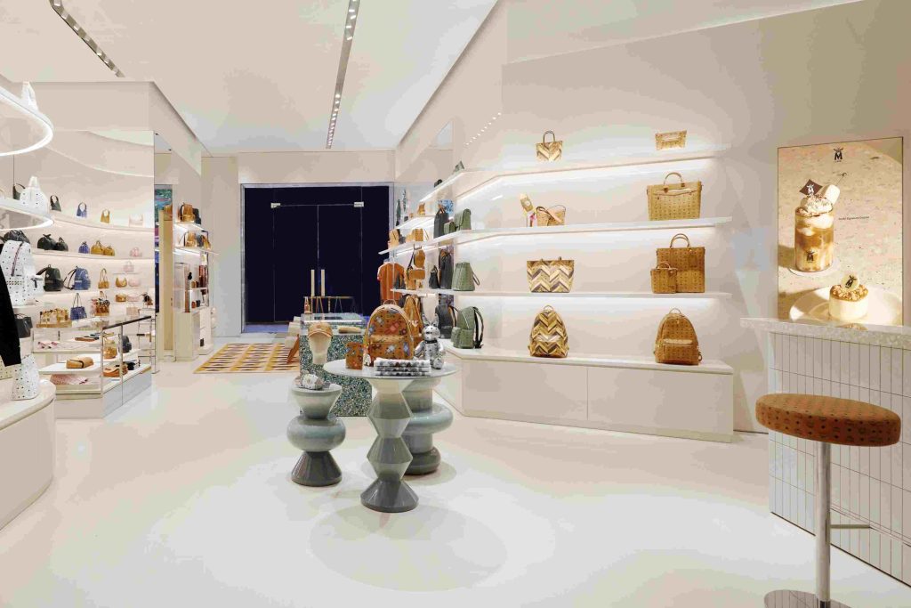 บรรยากาศโดยรวมของร้านถูกขับเน้นด้วยโทนสีเบจอ่อน เสริมมิติด้วยวัสดุและพื้นผิวแบบ tone-on-tone ไฮไลต์ด้วยเคาน์เตอร์แคชเชียร์หินเทอร์ราซโซสีเขียว แท่นวางสินค้าโทนสี accent พรมลวดลายเรขาคณิต และกลุ่มที่นั่งซึ่งเปรียบเสมือนงานศิลป์ ทุกองค์ประกอบสะท้อนแนวคิด Modern Luxury ของ MCM ได้อย่างชัดเจน