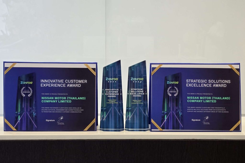 รางวัล Innovative Customer Experience Award มอบให้แก่นิสสัน ประเทศไทย จากความสำเร็จในการพัฒนาระบบบริการลูกค้าแบบบูรณาการ ที่ผสานการทำงานของ Social Customer Care, เทคโนโลยี GenAI และระบบบริหารความสัมพันธ์ลูกค้า (CRM) ของนิสสัน เพื่อส่งมอบบริการที่รวดเร็ว ชัดเจน และสม่ำเสมอในทุกช่องทาง สะท้อนแนวคิดของบริษัทที่เชื่อว่า “ทุกเสียงของลูกค้ามีความหมาย”