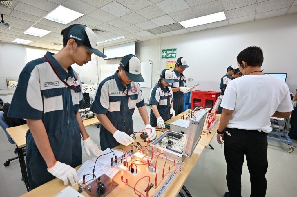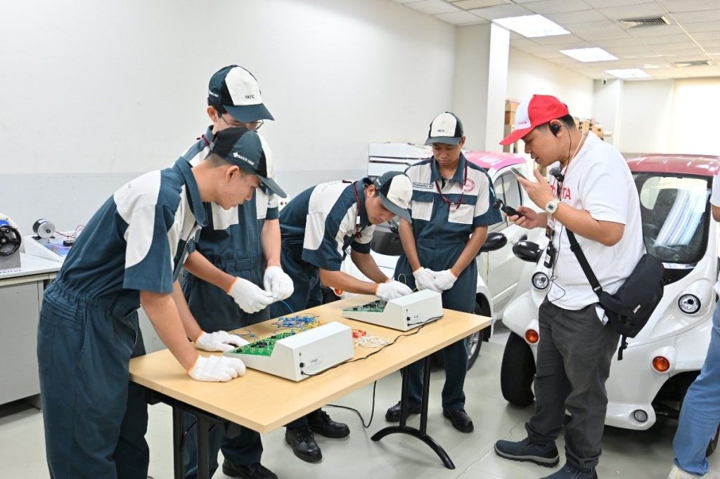1.1 ความร่วมมือกับภาครัฐ เดินหน้าขยายผลความร่วมมือระยะยาวกับสำนักงานคณะกรรมการการอาชีวศึกษาผ่านโครงการ T-TEP (Toyota Technical Education Program) มาตั้งแต่ปี 2533 มุ่งเน้นการถ่ายทอดเทคโนโลยีสมัยใหม่และการฝึกปฏิบัติจริงทั้งด้านเทคโนโลยียานยนต์ทั่วไป และเทคโนโลยีตัวถังและสี พร้อมชูจุดเด่นการเรียนรู้ Toyota Team-GP ซึ่งเป็นแพลตฟอร์ม e-Learning มาตรฐานเดียวกับที่ใช้ฝึกอบรมช่างเทคนิคในศูนย์บริการโตโยต้าทั่วโลกเข้ามาเป็นหัวใจสำคัญในการเรียนรู้ ช่วยการันตีโอกาสการฝึกงานที่ผู้แทนจำหน่าย อันนำไปสู่โอกาสการจ้างงานให้กับเยาวชนทั่วประเทศ