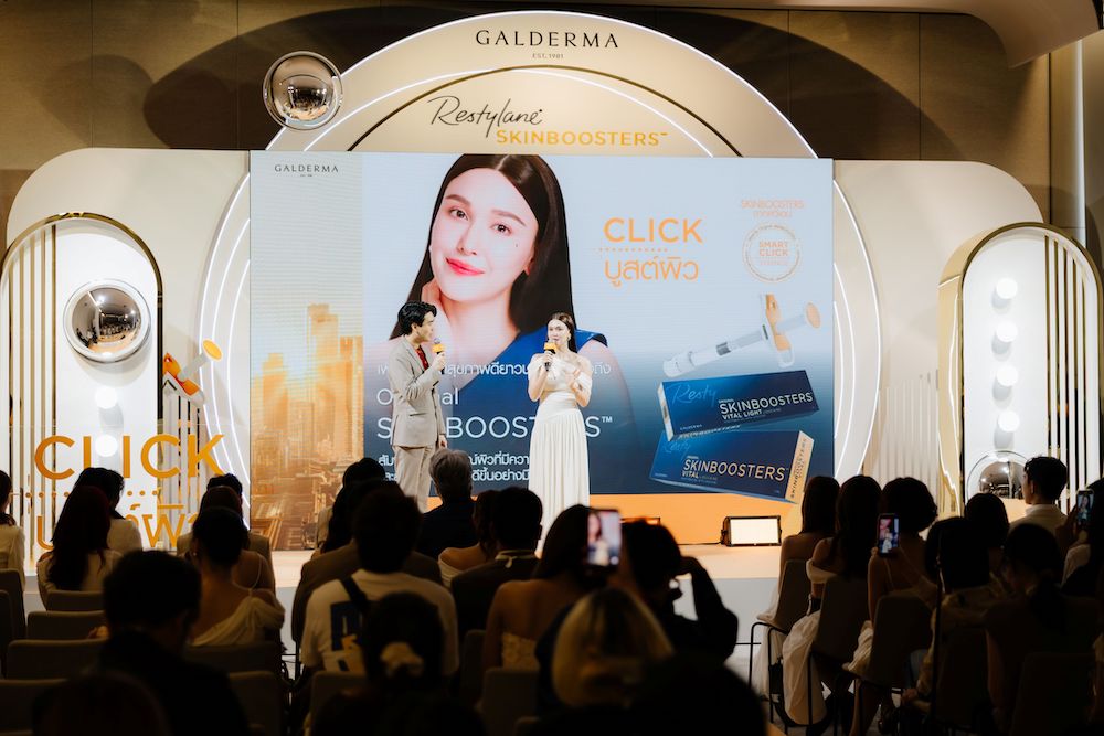 ภก. ณัฐเดช อังวัฒนพาณิช ผู้จัดการฝ่ายการตลาด กลุ่มธุรกิจความงาม ประเทศไทย บริษัท กัลเดอร์มา (ประเทศไทย) จำกัด กล่าวว่า “ในปีนี้ กัลเดอร์มา เดินหน้าขับเคลื่อนธุรกิจด้วยแนวคิด ‘Aesthetic Lives’ มุ่งสร้างสรรค์ทุกความงามเพื่อผลลัพธ์ที่ยั่งยืน ด้วยวิทยาการและเทคโนโลยีความงามที่มีมาตรฐานและมีความปลอดภัย สร้างประสบการณ์ความงามที่เชื่อมโยงกับไลฟ์สไตล์ของผู้บริโภคยุคใหม่ เพราะ กัลเดอร์มา เชื่อว่าการดูแลด้านความงามเป็นการเดินทางระยะยาวของแต่ละคน ไม่ใช่แค่ทรีตเมนต์เพียงครั้งเดียว แต่คือการดูแลผิวและความมั่นใจอย่างต่อเนื่องร่วมกับแพทย์ที่มีความเชี่ยวชาญ เพื่อเติมเต็มความมั่นใจและให้ทุกคนได้เป็นตัวเองในเวอร์ชันที่ดียิ่งขึ้น ล่าสุด นำเทคโนโลยีความงามมาผสานกับ Music Marketing แล้วสร้างสรรค์เป็นแคมเปญความงามรูปแบบใหม่ ‘#CLICKบูสต์ผิว’ เพื่อใช้เสียงดนตรีมาเป็นสื่อกลางให้ทุกคนเข้าถึงแคมเปญได้ง่าย จดจำแบรนด์และจุดเด่นของ Restylane SKINBOOSTERS™ ซึ่งเป็นผลิตภัณฑ์สารเติมเต็ม (Hyaluronic Acid Dermal Filler) ประเภทที่มีส่วนช่วยเพิ่มความชุ่มชื้นและกักเก็บน้ำให้แก่ชั้นผิว ส่งผลให้ผิวแลดูเรียบเนียนและอิ่มน้ำอย่างเป็นธรรมชาติ รวมถึงช่วยปรับสภาพผิว จึงเหมาะสำหรับการฟื้นบำรุงผิวที่ดูอ่อนล้า พร้อมทำให้เรื่องการดูแลผิวกลายเป็นประสบการณ์ที่รู้สึกสนุก เป็นกันเอง และใกล้ตัวมากยิ่งขึ้น ตลอดจนตอกย้ำภาพลักษณ์ความเป็นผู้นำกลุ่มผลิตภัณฑ์ SKINBOOSTERS ในตลาดเวชศาสตร์ผิวพรรณของไทย”