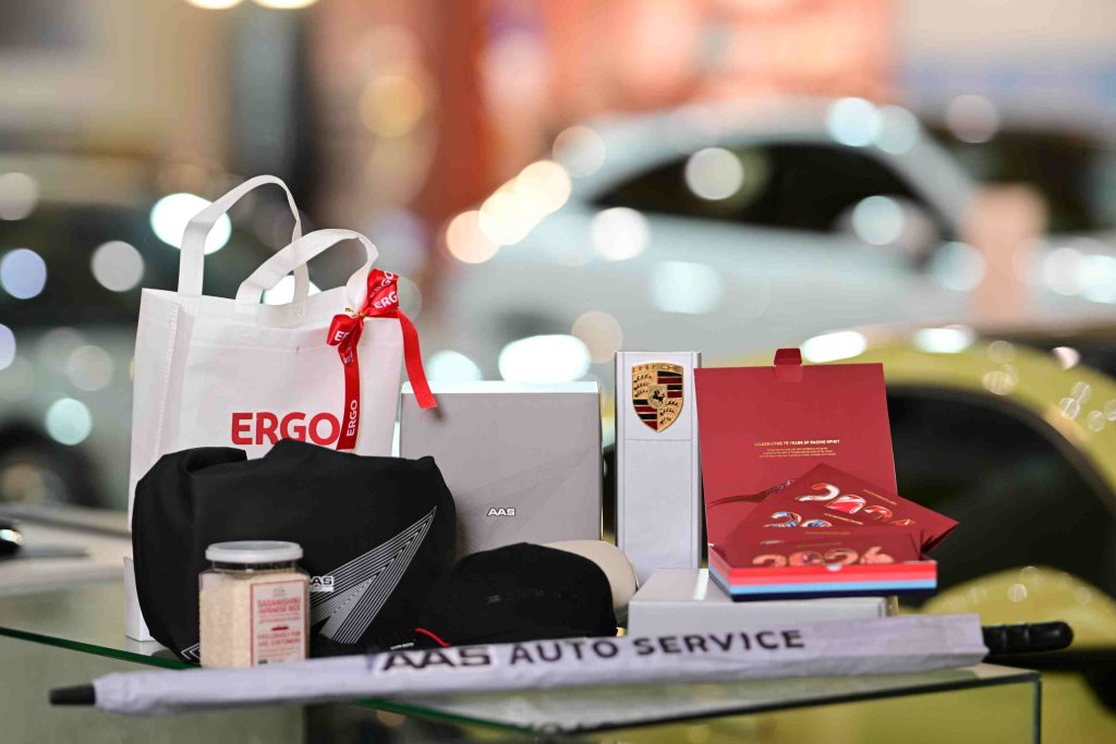 พร้อมสิทธิประโยชน์สุดพิเศษสำหรับ Taycan J1 II, Macan H2 และปอร์เช่รุ่นอื่น ๆ โดยผู้ที่จองรถยนต์ภายในงานทุกรุ่น จะได้รับสิทธิประโยชน์เพิ่มเติมมากมายจากเอเอเอสฯ และพันธมิตร ดังนี้ หมวก Porsche Thailand, ร่ม AAS-Porsche x Mobil1, กระเป๋า AAS-Porsche x Mobil1, Okawari Sasanishiki Japanese Rice ข้าวญี่ปุ่นพรีเมี่ยมสายพันธุ์ซาซานิชิกิ, ของที่ระลึก พร้อมประกัยภัยเงื่อนไขความคุ้มครองยาง และ แม็กซ์ 100% (ระยะเวลาคุ้มครอง 1 ปี) จาก ERGO ประกันภัย, ฟิล์มเซรามิกรุ่น Black Porsche จากแบรนด์ Protektion By Midas* (จำนวนจำกัด)