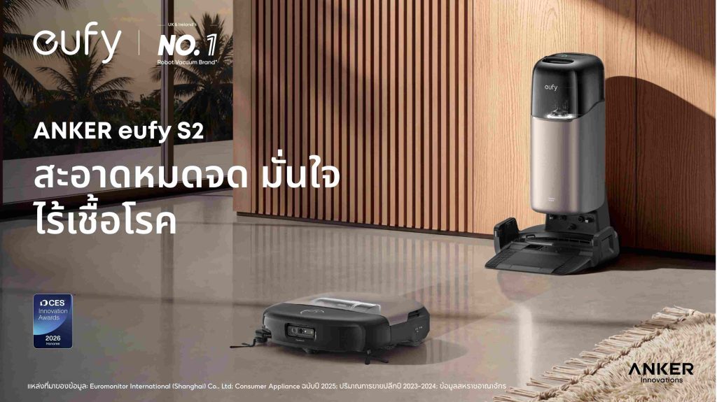 - ANKER eufy S2: พรีออเดอร์ผ่าน Shopee และ Lazada ตั้งแต่ 25 กุมภาพันธ์ 2569 ในราคา 49,999 บาท พร้อมของสมนาคุณพิเศษถึง 25 มีนาคม 2569