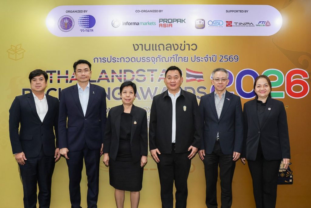 ผศ.ดร.วีรชัย อาจหาญ ผู้ว่าการ สถาบันวิจัยวิทยาศาสตร์และเทคโนโลยีแห่งประเทศไทย (วว.) กระทรวงการอุดมศึกษา วิทยาศาสตร์ วิจัยและนวัตกรรม (อว.) (ที่สามจากขวา) และ นายสรรชาย นุ่มบุญนำ ผู้จัดการทั่วไป อินฟอร์มา มาร์เก็ตส์ ประเทศไทย (ที่สองจากซ้าย) ผู้จัดงาน ProPak Asia 2026 พร้อมด้วยพันธมิตร นายสุนทร ยงค์วิบูลศิริ ที่ปรึกษาและกรรมการ สถาบันการจัดการบรรจุภัณฑ์และรีไซเคิลเพื่อสิ่งแวดล้อม (ที่สองจากขวา) นางสาวรพีรัตน์ ราชเพ็ชร ผู้อำนวยการ สำนักพัฒนาลูกค้าสถาบันและองค์กรชุมชน ธนาคารเพื่อการเกษตรและสหกรณ์การเกษตร (คนแรกขวา) ดร.พัชทรา มณีสินธุ์ รองผู้ว่าการวิจัยพัฒนาด้านพัฒนาอย่างยั่งยืน สถาบันวิจัยวิทยาศาสตร์และเทคโนโลยีแห่งประเทศไทย (ที่สามจากซ้าย) และ ดร.วาทิต แก้วแววน้อย ผู้อำนวยการ สถาบันการจัดการบรรจุภัณฑ์และรีไซเคิลเพื่อสิ่งแวดล้อม (คนแรกซ้าย) ร่วมกันจัดงานแถลงข่าวการประกวด ThailandStar Packaging Awards 2026 เพื่อค้นหาสุดยอดบรรจุภัณฑ์ไทยประจำปี 2569 ภายใต้แนวคิด “Packaging Beyond the Box : ก้าวข้ามขีดจำกัด สู่บรรจุภัณฑ์แห่งอนาคต” โดยเชิญชวนทั้งนักเรียน นักศึกษา และผู้ประกอบการไทยร่วมส่งผลงานเข้าประกวด ชิงเงินรางวัลรวมกว่า 200,000 บาท เปิดรับสมัครตั้งแต่วันนี้ – 20 เมษายน 2569 ประกาศผลและมอบรางวัลแก่ผู้ชนะในงาน ProPak Asia 2026 ในวันที่ 11 มิถุนายน 2569 ณ อิมแพ็ค เมืองทองธานี