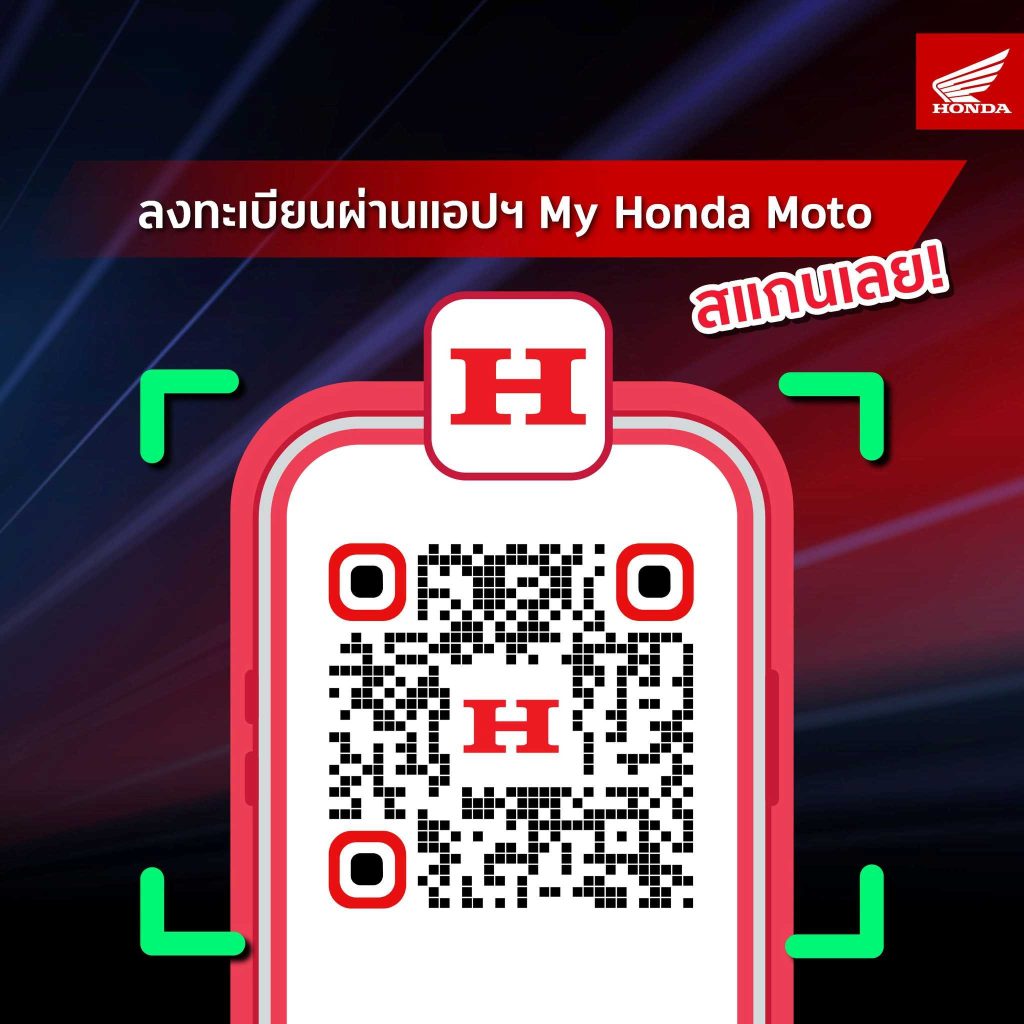 - ลงทะเบียนและผูกรถผ่านแอปพลิเคชัน My Honda Moto โดยจำกัด 1 คัน ต่อ 1 สิทธิ์