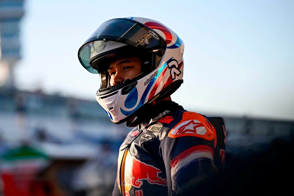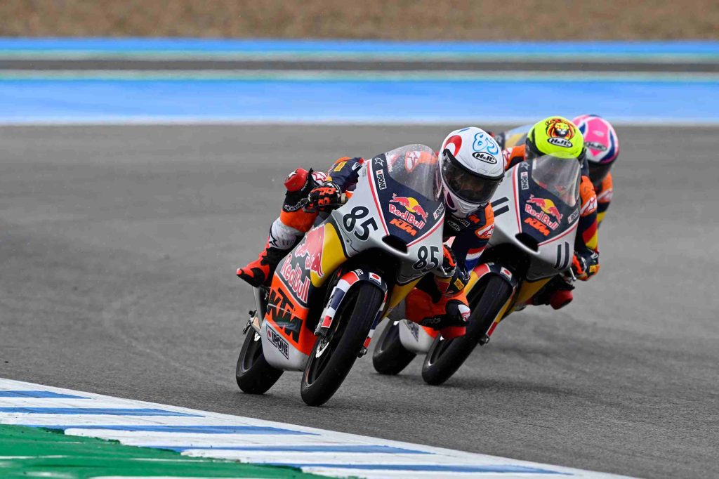 “ไม้คิว” เกียรติศักดิ์ สิงหพงศ์ นักบิดดาวรุ่งจาก “ฮอนด้า เรซซิ่ง ไทยแลนด์” เจ้าของหมายเลข 85 สู้สุดกำลังแก้ไขสถานการณ์แซงเดือดก่อนคว้าท็อป 7 ในรายการเรดบูล โมโตจีพี รุกกีส์ คัพ 2026 สนามแรก เฮเรซ ราวด์ เรซ 2 ที่ เซอร์กิโต เด เฮเรซ – อังเคล นิเอ็ตโต ประเทศสเปน เมื่อวันอาทิตย์ 26 เมษายน ที่ผ่านมา