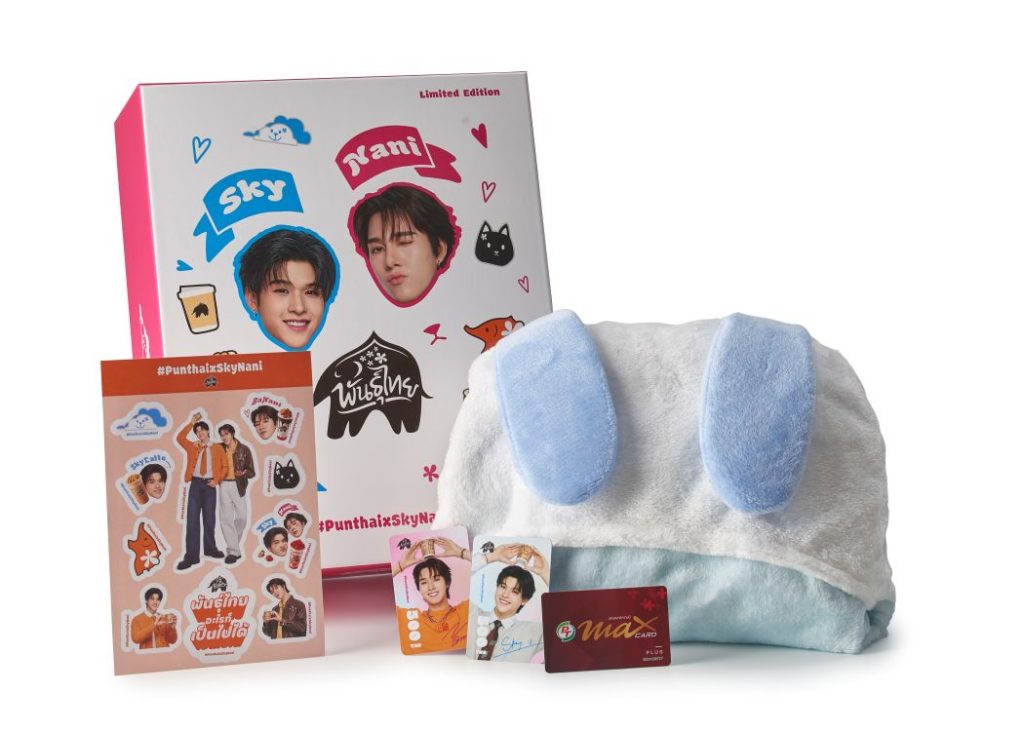 ภายในงานเตรียมเปิดตัว Box Set #PunthaixSkyNani คอลเลกชันสุดพิเศษ ในเซ็ตมีทั้งผ้าห่มลายสกาย หูน้องหมาสีฟ้า หรือ ลายนานิ หูน้องแมวสีชมพู บัตรสมาชิก Max Card Plus มูลค่า 599 บาท, Cash Card ลายสกายและลายนานิ ใบละ 500 บาท 2 ใบ รวมมูลค่า 1,000 บาท และสติ๊กเกอร์สุดน่ารัก ในราคาสุดคุ้มเพียง 1,599 บาทเท่านั้น ความฟินยังไม่หมดเพียงเท่านี้ เพราะภายในงานยังมี Cash Card ลายคู่สกาย–นานิ สุดเอ็กซ์คลูซีฟให้เลือกสะสมถึง 2 แบบ ราคาใบละ 500 บาท เพียงซื้อลายใดก็ได้ 1 ใบ รับฟรี Phone Charm ดีไซน์พิเศษ 1 ชิ้น ซึ่งทั้ง Box Set และ Cash Card ลายคู่กัน สามารถหาซื้อเป็นเจ้าของได้เฉพาะงานนี้เท่านั้น