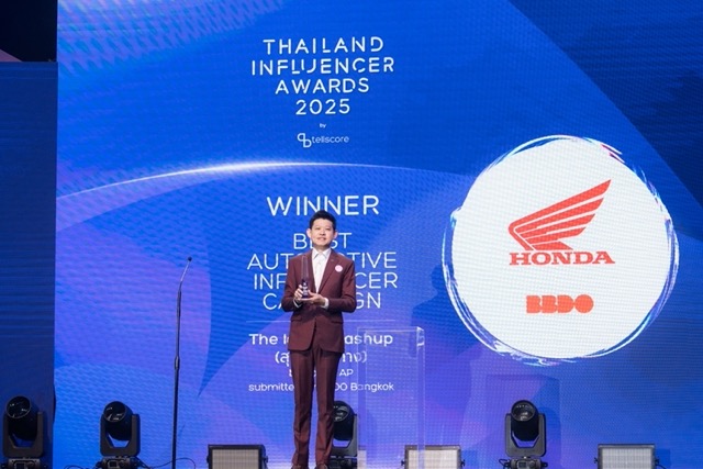 รถจักรยานยนต์ฮอนด้า คว้ารางวัลชนะเลิศอันดับ 1 ในสาขา “Best Automotive Influencer Campaign” จากเวที Thailand Influencer Awards 2025 โดย บริษัท เทลสกอร์ จำกัด (Tellscore) ภายใต้ธีม “Creators of Change – ครีเอเตอร์เปลี่ยนโลกพารอด” ซึ่งจัดขึ้น ณ ICONSIAM – TRUE ICON HALL ชั้น 7 เมื่อเร็ว ๆ นี้