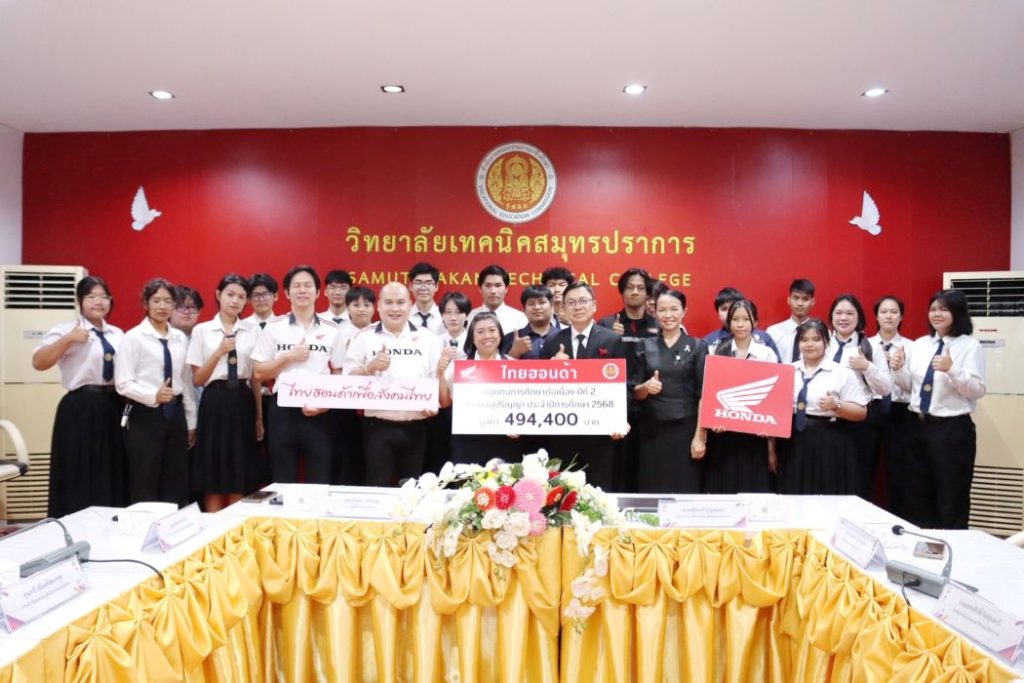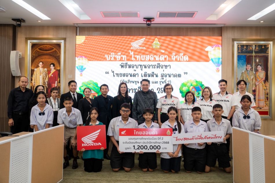 ไทยฮอนด้า ผู้ผลิตและจัดจำหน่ายรถจักรยานยนต์และเครื่องยนต์อเนกประสงค์ฮอนด้าในประเทศไทย ตอกย้ำพันธกิจในการพัฒนาสังคมไทยอย่างยั่งยืน มอบทุนการศึกษาให้แก่นักเรียนและนักศึกษาระดับชั้นประถมศึกษา อาชีวศึกษาและอุดมศึกษา รวมมูลค่ากว่า 1,718,400 บาท โดยมุ่งสร้างโอกาสทางการศึกษาอย่างเท่าเทียม และสนับสนุนการเรียนรู้เพื่อพัฒนาศักยภาพของเยาวชนไทย อันเป็นกำลังสำคัญในการขับเคลื่อนประเทศในอนาคต ภายใต้ความเชื่อว่า “การศึกษา คือ รากฐานที่มั่นคงในการพัฒนาสังคม”
